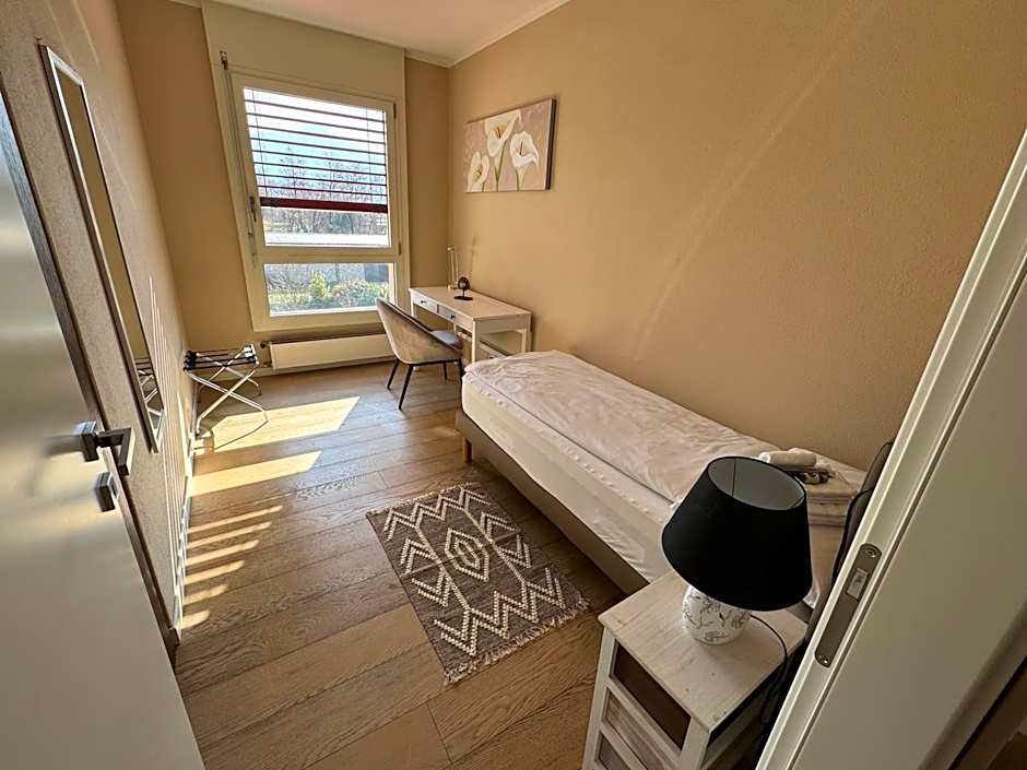 Private parking is available on site (reservation is not needed) and costs CHF 10 per day.