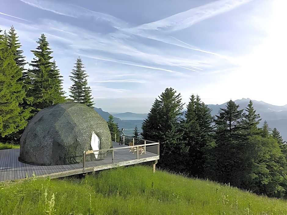 This Pod suite furnished with old wood and bells features panoramic views of the Alps in a Chalet atmosphere. It offers a private sauna, a pellet stove, a large terrace, a Nespresso coffee machine and a tablet with Netflix. A fully stocked bar is included and massages can be arranged inside the Pod.