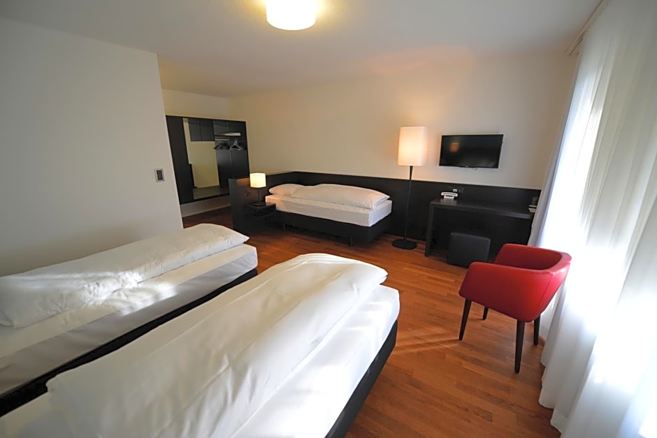 Private parking is available on site (reservation is not needed) and costs CHF 9 per day.