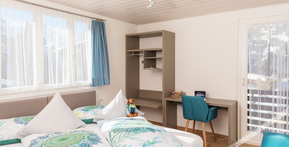 Wengen is a car free village. Village itself is already very beautiful. We are with 3 persons. a room is separate with a wall, so looks like you have a separate room. Room is big, toilet is big. Bed is comfortable, just the pillow is way too soft. kettle boiler in the room, tea and coffee. Room is cleaned everyday. we had a room facing street, not the mountain. a bit pity. but still beautiful enough. windows possible to open. COMPLIMENT TO EXCELLENT BREAKFAST. all fresh ingrediantes, fresh orange juice, self boiled eggs, so you can control how soft or hard you want your egg. the croissants are amazing. I never had such delicious croissants.