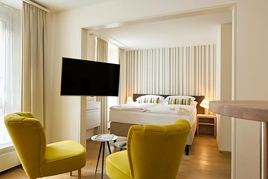When night falls, find your cozy sanctuary in one of the hotel's thoughtfully designed rooms. From spacious Superior Studios perfect for families, to doubles and Queen Rooms ideal for couples or solo travelers, there’s an option for everyone. Wake up refreshed and ready to continue your Swiss adventure, knowing that comfort, convenience, and charm are all part of the PLATZHIRSCH ZÜRICH experience. Your unforgettable Zürich story begins here!