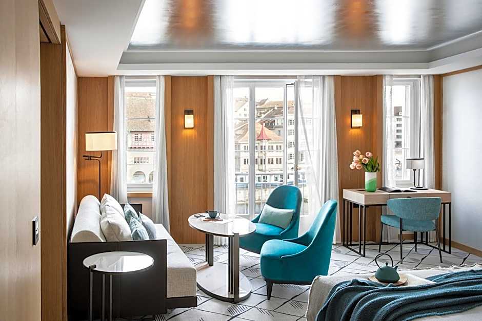 With a view over the Limmat river, these junior suites feature a marble bathroom with bathtub and walk-in shower, a 40-inch HD flat-screen SAT and Airplay TV, a seating area with sofa bed, a Nespresso machine and high-speed internet access.