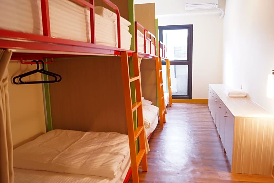 This bed in dormitory features air conditioning and can accommodate up to 6 male guests.