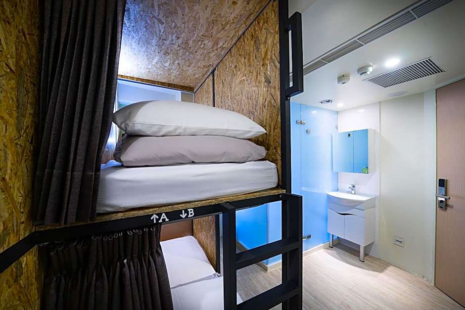 This bed in dormitory features a soundproofing and air conditioning.