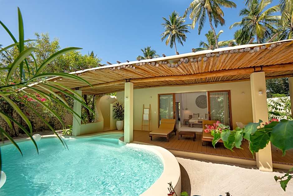 The Cinnamon Family Room at Zanzibar White Sand Luxury Villas & Spa is a refined and spacious retreat, thoughtfully crafted for families. Featuring two separate bedrooms, each with its own private bathroom, and a cozy living area, this accommodations ensures privacy and comfort. Step outside to your private terrace and enjoy a tranquil garden with an exclusive hot tub.