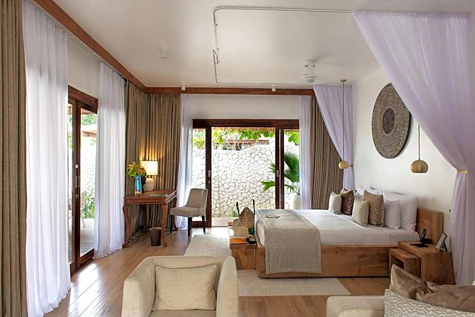 The Cinnamon Double Room at Zanzibar White Sand Luxury Villas & Spa is a perfect retreat for couples or solo travelers seeking comfort and style. This elegant room features a king-size bed, a private bathroom with a rain shower, dual sinks, and premium amenities.