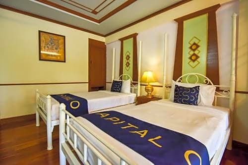 The MW Krabi Beach Resort offers Deluxe Double or Twin Rooms, which have a room size of 474 sqft and can accommodate 2 adults and 1 child. These rooms have either two twin beds or one king-size bed and do not allow smoking.