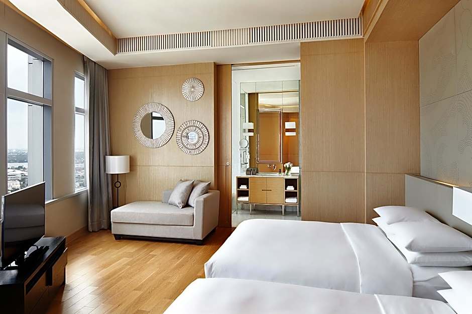 This spacious suite consists of 2 bedrooms, a seating area and 1 bathroom with a walk-in shower and a bath. The air-conditioned suite provides a flat-screen TV with cable channels, a mini-bar, a tea and coffee maker, executive lounge access as well as city views. The unit offers 3 beds.