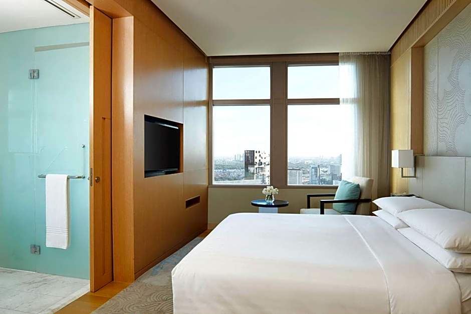 This spacious suite consists of 1 bedroom, a seating area and 1 bathroom with a walk-in shower and a bath. The air-conditioned suite provides a flat-screen TV with cable channels, a mini-bar, a tea and coffee maker, executive lounge access as well as city views. The unit offers 1 bed.
