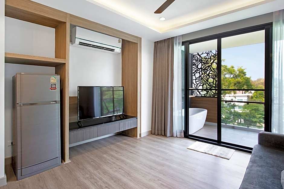 The hot tub is the standout feature of this suite. This spacious suite features 1 living room, 1 separate bedroom and 1 bathroom with a bath and free toiletries. In the kitchen, guests will find a stovetop, a refrigerator, kitchenware and a microwave. The air-conditioned suite features a flat-screen TV with streaming services, a washing machine, a mini-bar, a seating area as well as garden views. The unit has 2 beds.