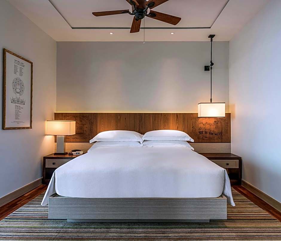 Imagine um refúgio à beira-mar banhado pelo sol, onde a elegância cinco estrelas encontra o charme descontraído de Hua Hin. Os hóspedes podem caminhar até a areia ou ficar à beira da piscina ao ar livre, que oferece um tobogã aquático e uma piscina exclusiva para crianças, garantindo muita diversão.