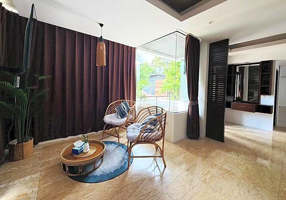 Located on the first and second floors, this standard room with balcony features a living corner and a counter bar where guests can relax and enjoy their favorite drinks. The private bathroom is equipped with a shower facilities. ( There is no elevator ).