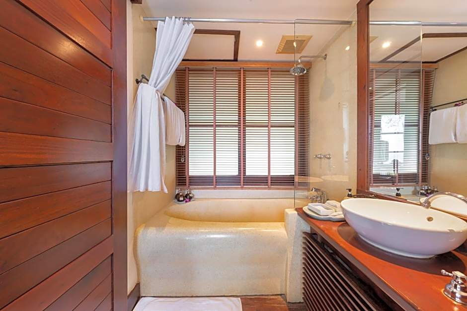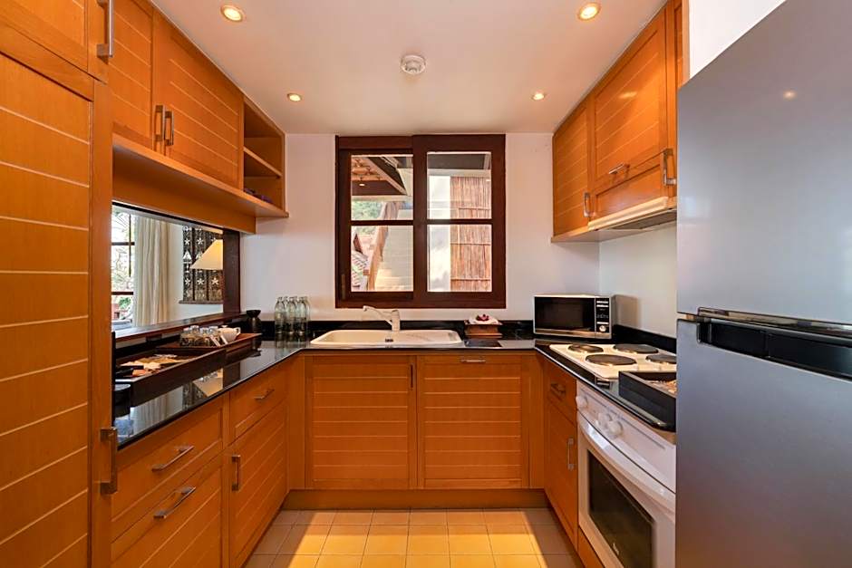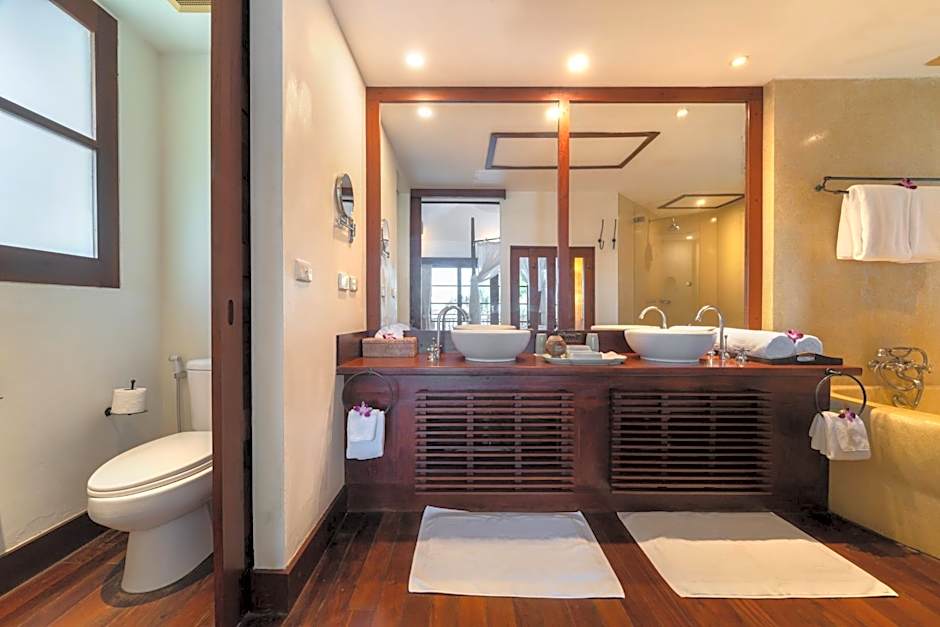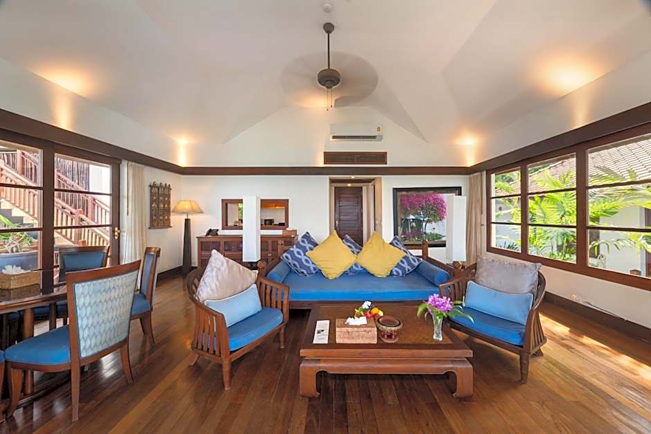 Offering ample privacy, this unite is consisted of of a spacious living, dining areas, and a kitchenette. There area also a private pool,a massage pavilion and terraces. Please note that this room located in a multi-level building with stair accessible only.