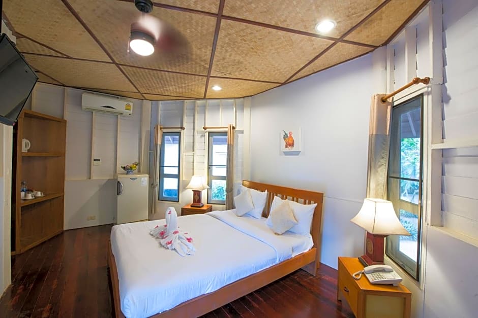 Featuring Thai-style bamboo ceilings and wooden flooring, rooms feature a large cooling fan, private balcony and hot-water showers.