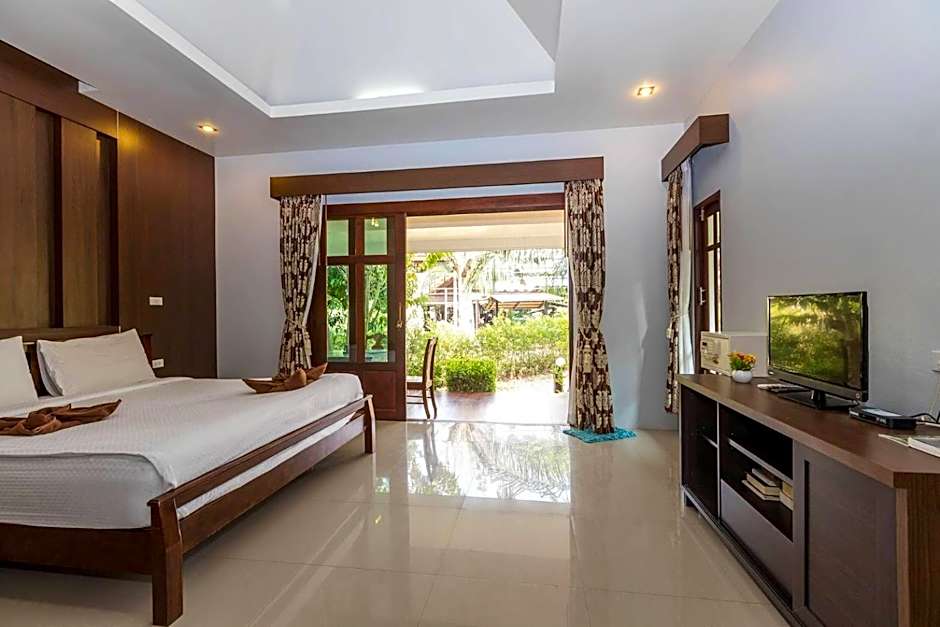 Larger air-conditioned villa features a private balcony, a kitchen and an private bathroom. Includes a flat-screen satellite TV.