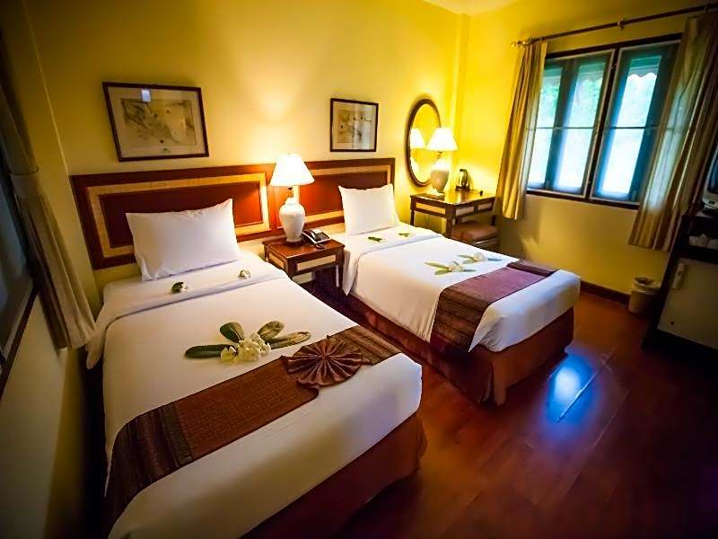 The hotel has two on-site restaurants: Fern Restaurant and Rimlayy. Fern Restaurant offers a family-friendly atmosphere with a blend of traditional and modern settings. Rimlayy also provides a family-friendly environment with a mix of traditional, modern, and romantic ambiances, offering a variety of cuisines such as American, Chinese, Thai, Asian, and European.