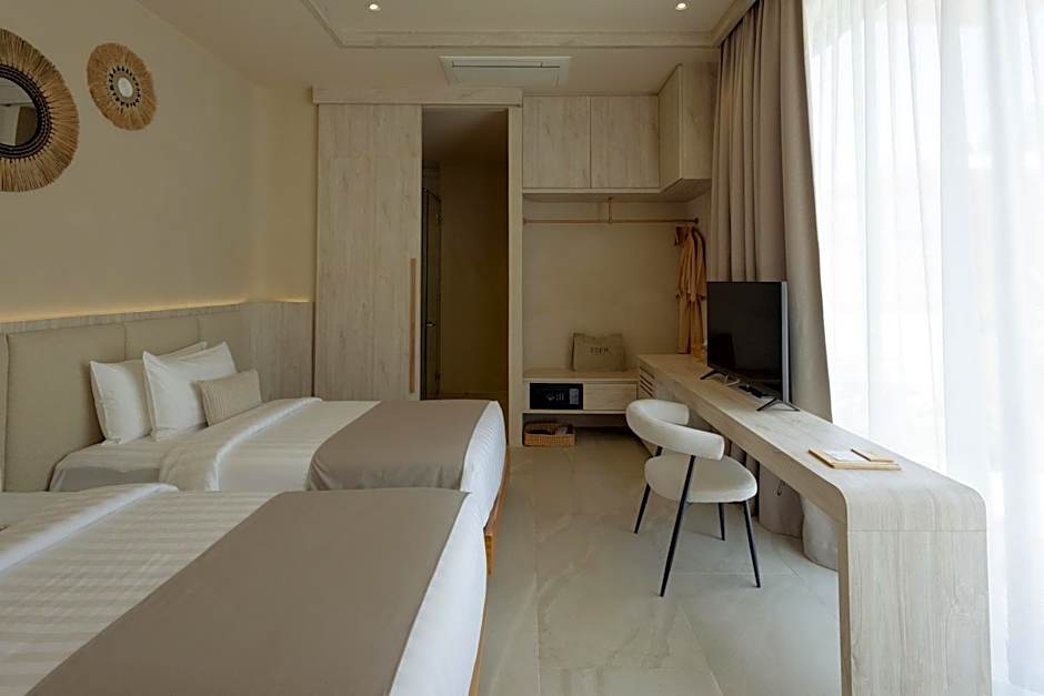 Each private suite is equipped with a terrace overlooking a lush tropical garden, a 55"smart TV, a bluetooth speaker with wireless charging, a complimentary set of mini-bar, a walk in shower with an indoor garden and free toiletries,
