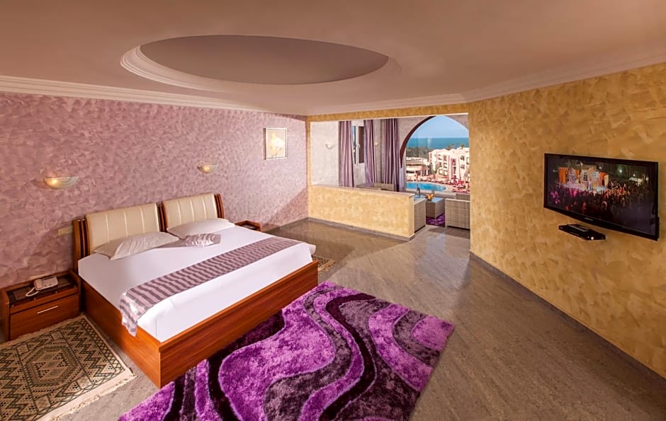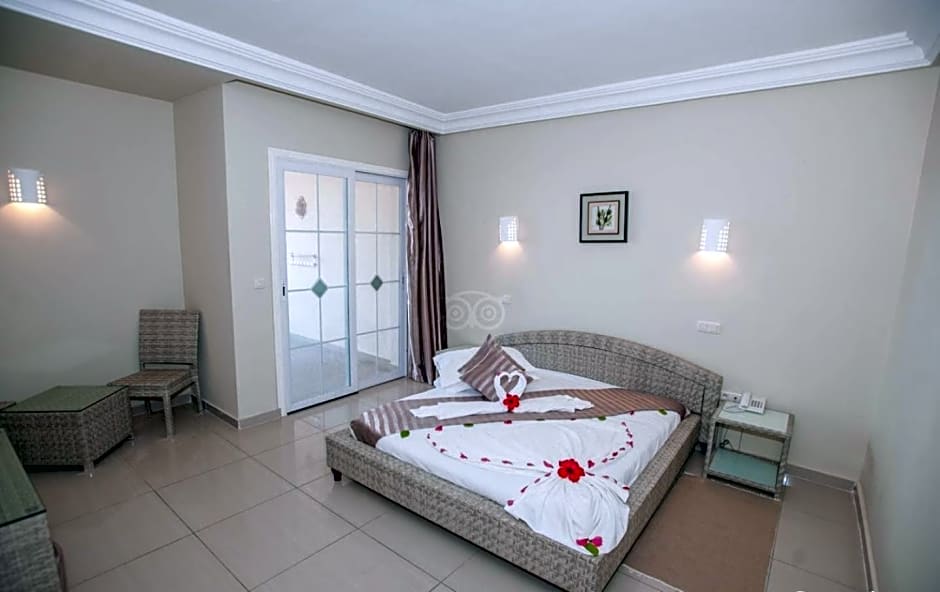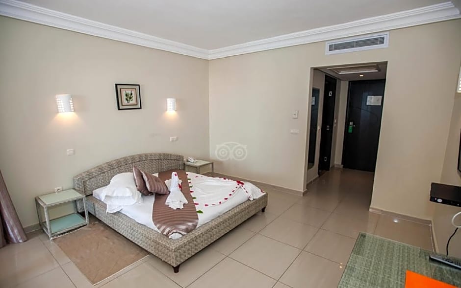 Indulge in the wealth of amenities provided, including both indoor and outdoor swimming pools, a fitness center for those looking to stay active, and a kids' club to keep the little ones entertained. Enjoy a breezy evening at the on-site bar, or treat yourself to a delicious meal at the hotel's restaurant. With air conditioning, soundproof rooms, and free Wi-Fi, your comfort is guaranteed during your stay at Hotel & Club Lella Meriam.