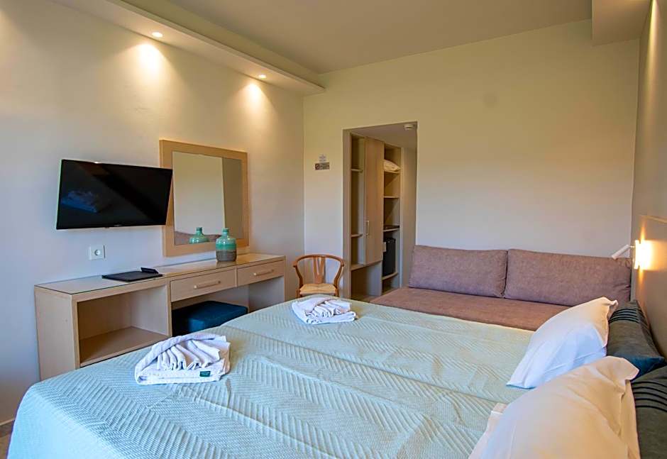 The spacious family room provides air conditioning, soundproof walls, as well as a private bathroom featuring a bath and a hairdryer. This family room features a mini-bar, a wardrobe, a flat-screen TV with cable channels and a balcony. The unit offers 3 beds.