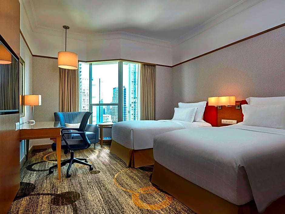 The twin room includes a private bathroom, well-fitted with a bath, a shower, a bidet, a hairdryer and slippers. The air-conditioned twin room offers a flat-screen TV with satellite channels, a mini-bar, a tea and coffee maker, a wardrobe as well as city views. The unit offers 3 beds.