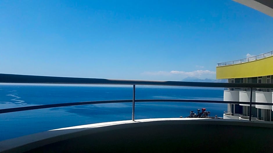 This room offers an LCD TV and balcony overlooking the sea.