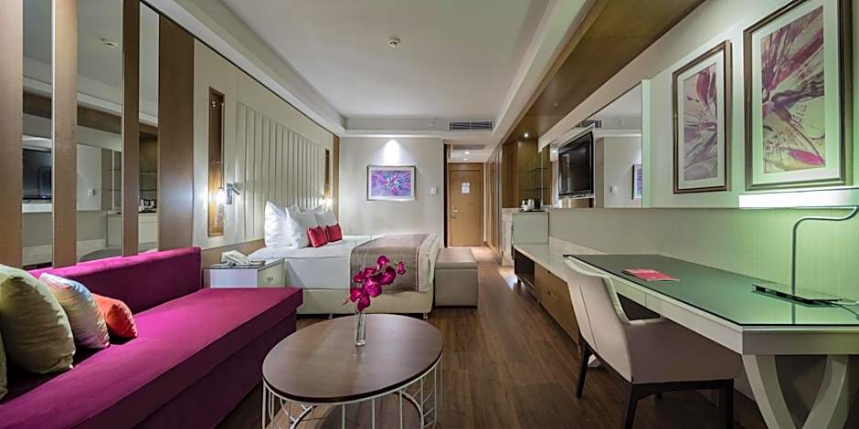 Family-friendly fun starts right at the shore with a private beach and a free water park, plus both indoor and outdoor pools and a waterslide. A free kids’ club and complimentary kids’ meals keep little ones entertained, while live music or performances add a festive touch. Wellness and fitness options are easy to fit in, with a Turkish/Steam Bath (free), sauna (free), and a free fitness center, along with spa/wellness packages for indulgent breaks.