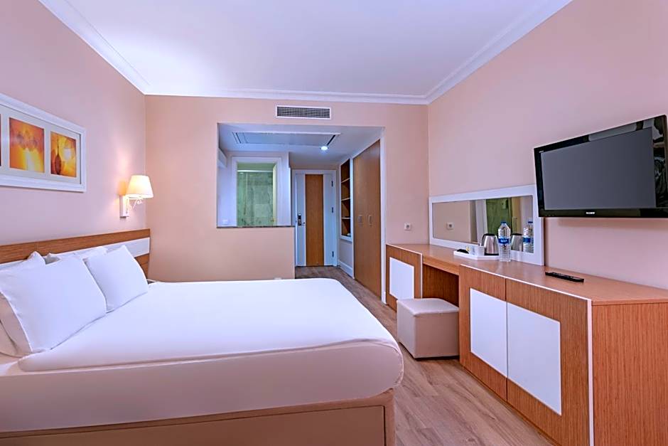 Dobedan World Palace Hotel 'Ex Brand Alva Donna World Palace' is a 5-star beachfront escape in Kemer, Turkey. Address: 5 Sahil Caddesi 5 5. Located about 2,1mi from the city center, the property offers direct sea access with a private beach area (free) and a complimentary water park. An outdoor swimming pool (free), private parking (free), and free Wi‑Fi keep essential comforts in reach.
