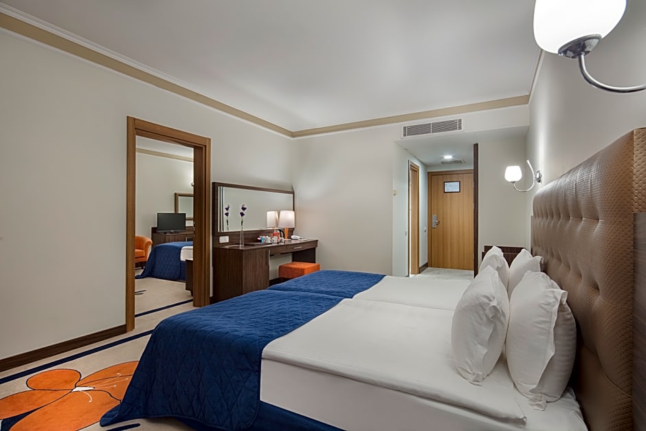 Guests can look forward to a relaxing stay surrounded by lush gardens, a sun deck, and stunning views. Whether lounging on the beach, playing a round of mini-golf, or enjoying a delicious meal at the on-site restaurant, Pine Beach Belek offers a memorable vacation experience for travelers of all ages. Don't miss out on the chance to experience this top-rated resort in Belek, Turkey.