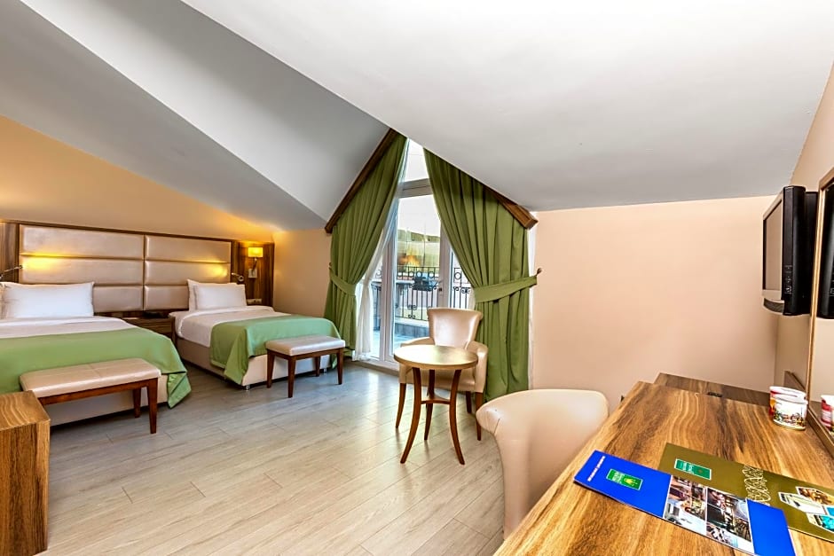 The Kumburgaz Marin Princess Hotel offers a variety of room types including Deluxe Double Rooms with Balcony, Standard Double or Twin Rooms, Junior Suites, and Standard Triple Rooms. Smoking is not allowed in any of these rooms. The rooms accommodate either 2 adults and 1 child or 3 adults and 1 child. Bed sizes range from 2 twin beds to king-size beds. Room sizes vary from 280 sqft to 431 sqft.