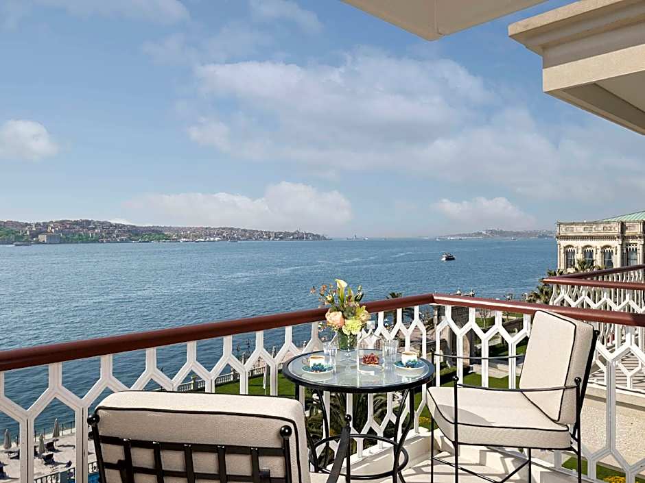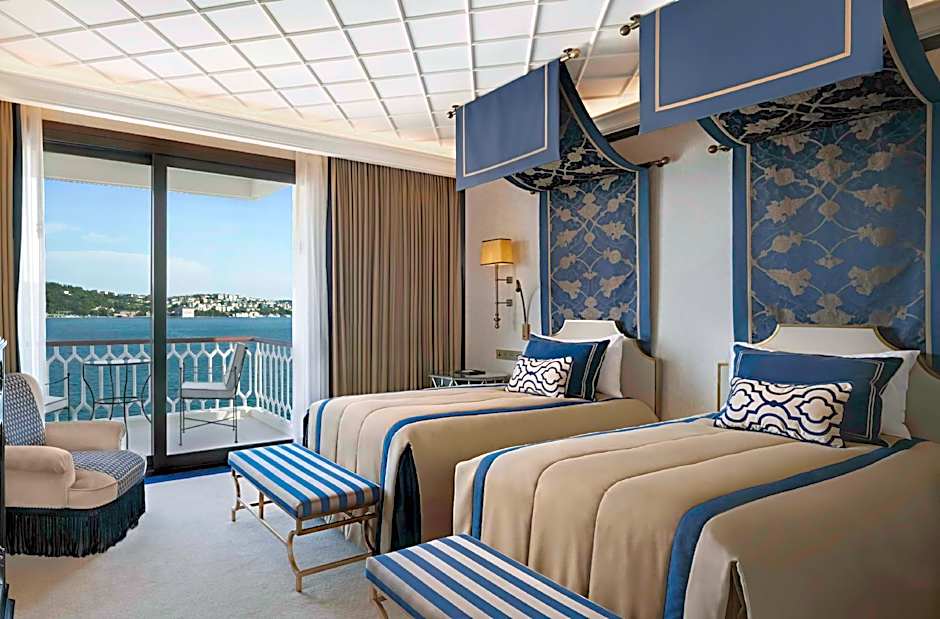 This room features a king bed or twin beds, a seating area and a bathroom. The balcony overlooks the Bosphorus and the interiors are inspired by Ottoman-era designs.