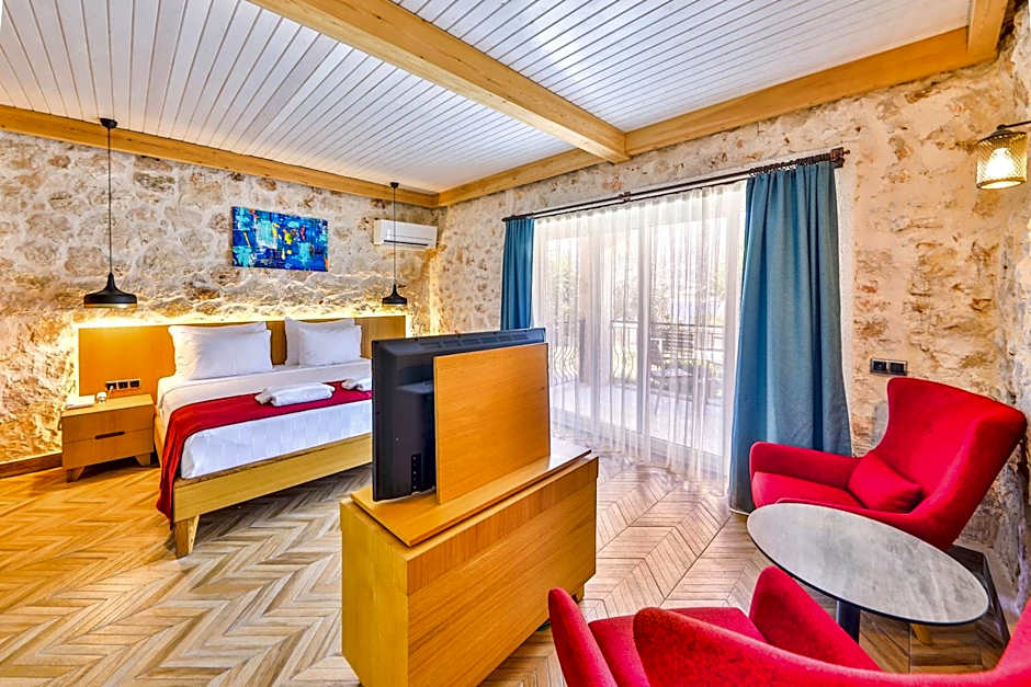 sits along Çukurbağ Yarımadası, Beyhan Cenkçi Cad. Selahattin Sönmez No: 5, Kaş, Turkey, about from the Kaş city center. This beachfront stay offers a private beach area for days spent by the water and easy access to the sparkling shoreline.