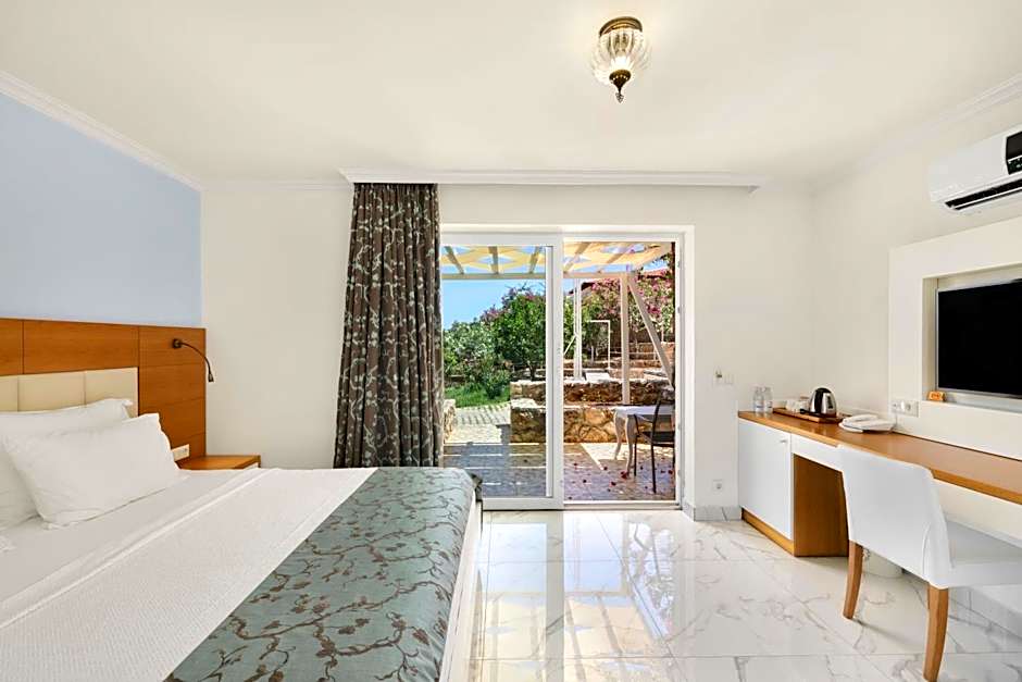 is a sun-soaked escape in Kaş, Turkey, just from the city center. Address: Cukurbag Yarimadasi, Ortaalan Mevkii, Hidayet Koyu No: 21 Kas, Antalya. This beachfront retreat puts the sea at the doorstep and features a private beach area, a draw for travelers, reflected in reviews.