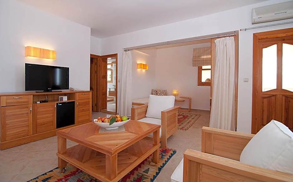 The Comfort Suites include a bedroom with a double bed and a separate living room. They also offer a large balcony overlooking the Mediterranean Sea.