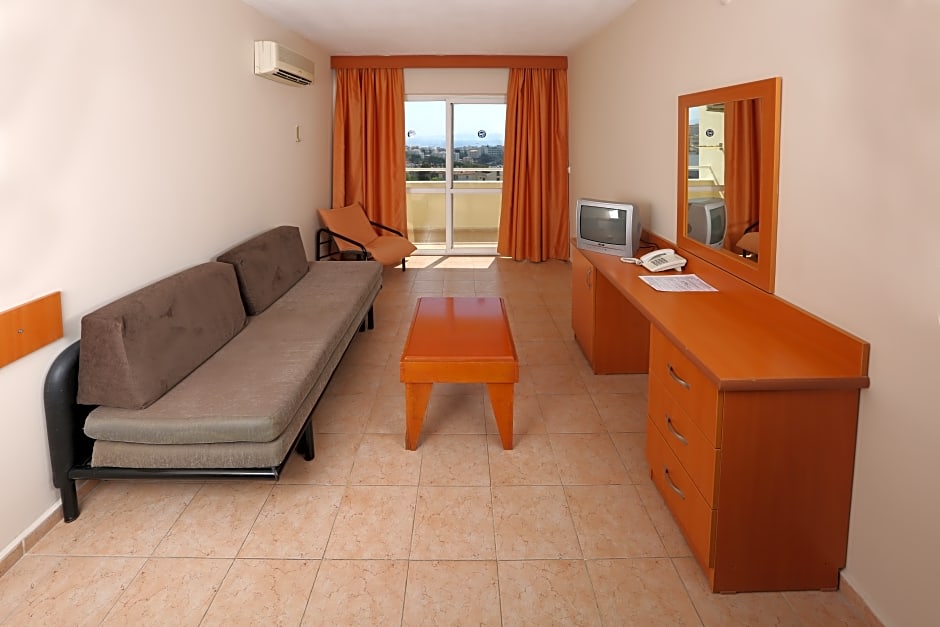 Apartment-style stays come with kitchenware and a kitchenette, plus balconies that open to garden views. On-site spaces include a terrace and a garden, while beach chairs and loungers invite easy afternoons by the outdoor pool, which operates seasonally and features a shallow end for relaxed dips.