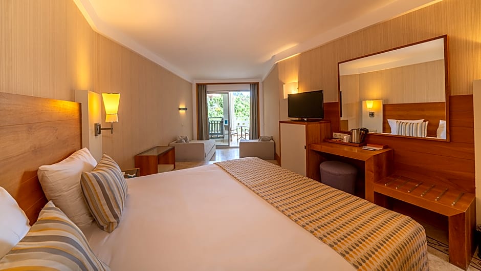 The hotel offers a variety of rooms including Family, Triple, and Double rooms. The occupancy ranges from single occupancy to accommodating 4 adults and 1 child. All rooms have non-smoking policies and range in size from 258 to 463 sqft, with beds including double beds and sofa beds. Some rooms feature garden or sea views.