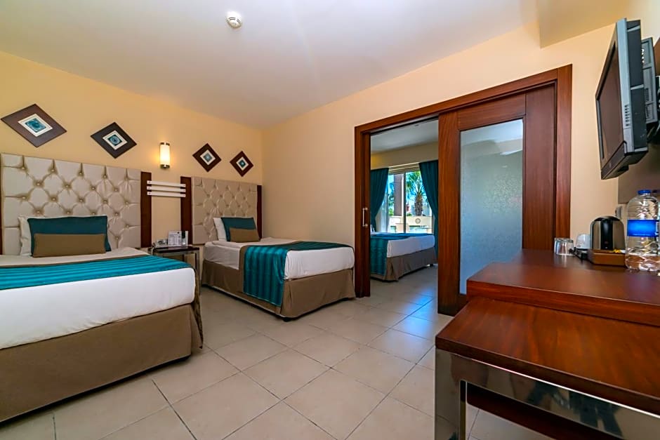 Immerse yourself in the crystal-clear waters of the Mediterranean at the private beach area or take a thrilling ride at the free water park. Relax and rejuvenate with complimentary spa/wellness packages, unwind in the sauna, or enjoy live music performances. For the little ones, there's a kids' club, pool, and kid-friendly buffet, ensuring fun for the whole family. Pamper yourself with Turkish baths, indoor and outdoor swimming pools, a fitness center, and more.