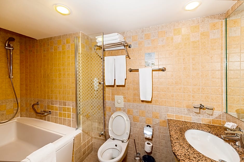 Guests can enjoy the convenience of free WiFi, parking on site, and a variety of dining options including a kid-friendly buffet and free kids' meals. The hotel boasts numerous entertainment options such as live music performances and a fitness center. The rooms are designed with comfort in mind, featuring air conditioning, private bathrooms, soundproofing, and balconies offering stunning views of the Mediterranean Sea. The hotel also offers wheelchair accessible accommodations for guests with special needs.