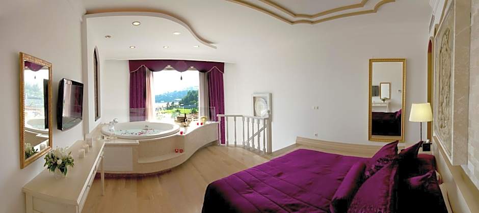This exclusive 984 ft² suite has a view of 14 different Turkish and Greek islands such as Kos, Kalymnos, Leros and Catal. Besides having a hot tub at the terrace, this room has a spa bath. This exclusive penthouse includes a dining room, a living room, two bedrooms, a study room, and a kitchenette.