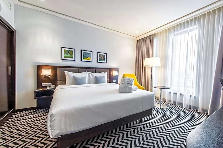 Номери в Hilton Garden Inn Krakow Airport просторі та сучасні, зручні ліжка, власні ванні кімнати та такі зручності, як кухонний куточок та плоский телевізор. Незалежно від того, чи подорожуєте ви у справах чи для відпочинку, у цьому готелі є все необхідне для комфортного та приємного перебування. Тож чому чекати? Забронюйте своє перебування в Hilton Garden Inn Krakow Airport вже сьогодні та відчуйте ідеальне поєднання зручності та розкоші. Ціни починаються всього з $113 за ніч.