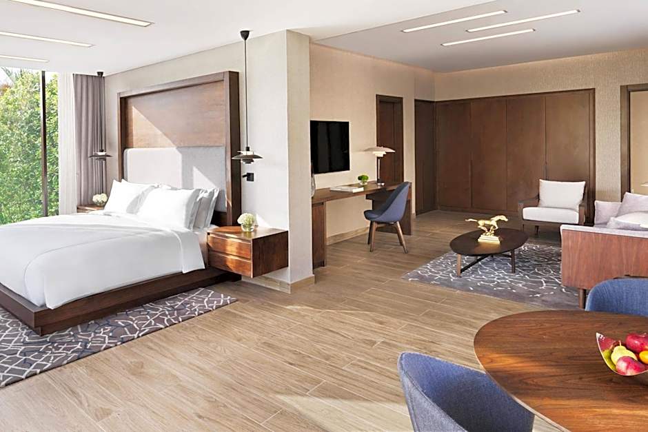 This elegantly decorated, air-conditioned villa features a spacious terrace with panoramic views of the lush gardens or Sheikh Zayed Grand Mosque. It offers a separate living room and bedroom. The kitchenette includes a microwave. Facilities include mini-bar, wardrobe, ironing and satellite TV. The bathroom is fitted with bath, shower and free toiletries.