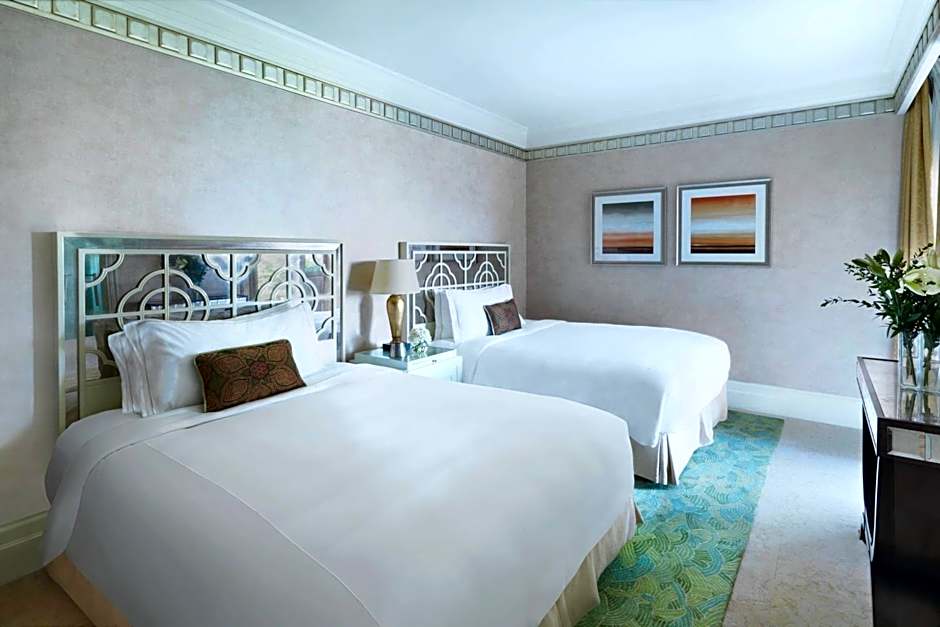 Guests at The Ritz-Carlton Abu Dhabi, Grand Canal can enjoy various leisure amenities at the hotel. They can relax by the outdoor swimming pools, one of which is open to all ages, and the other is exclusively for adults. For a culinary experience, guests can dine at the on-site restaurant, The Forge, known for its steakhouse cuisine. Moreover, they can spend a relaxing day at the private beach area or indulge in wellness packages at the spa. If they prefer a workout, there's a fully equipped fitness center. Families can take advantage of the kids' club and kids' meals offered at the hotel. Whether enjoying the garden view, room service, or the beach, there are ample options for guests to enjoy a memorable stay at the hotel.