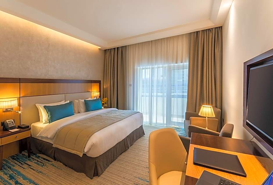 Golden Tulip Media Hotel is a four-star retreat in Dubai, United Arab Emirates. Nestled in Al Barsha Heights, it sits about 8.3mi from the city center. Price starts from $42, and the hotel has earned 7627 reviews from guests. Address: Al Barsha Heights, Dubai.