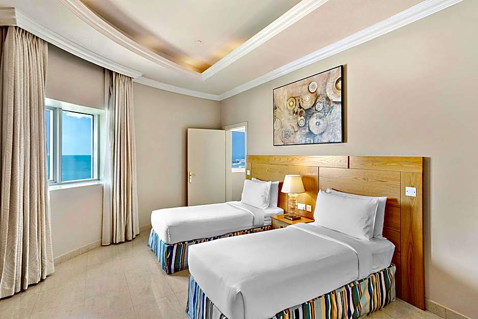 This Deluxe Twin in the residences offers stunning views of the Arabian Gulf and the beautiful 18-hole golf course. Perfect for two adults and 2 Children to enjoy a comfortable stay.