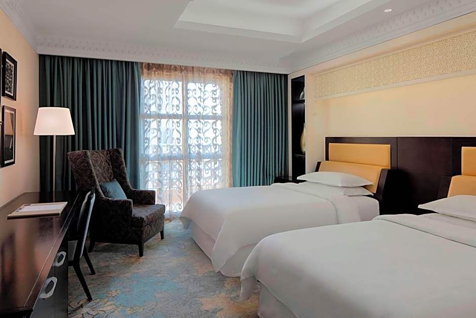 Welcome to the 5-star Sheraton Sharjah Beach Resort and Spa, situated on Al Muntazah Street, right on the beachfront of Sharjah, United Arab Emirates. With a private beach area, outdoor swimming pool, and a kids' club, this resort is the perfect destination for a family vacation. At a starting price of $123, you can enjoy a luxurious stay in this beachfront paradise, just 4,1mi from the city center.