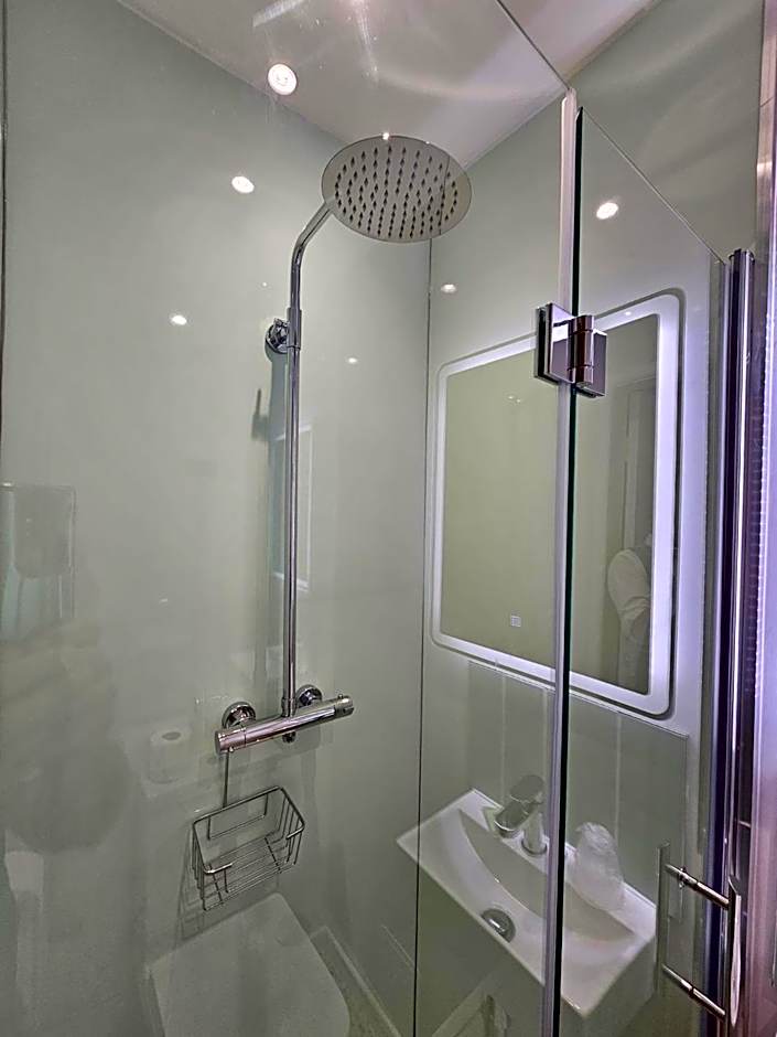 The double room features a tea and coffee maker, a wardrobe, as well as a private bathroom boasting a walk-in shower and a hairdryer. This double room has a carpeted floor, heating, a flat-screen TV and a quiet street view. The unit has 1 bed.