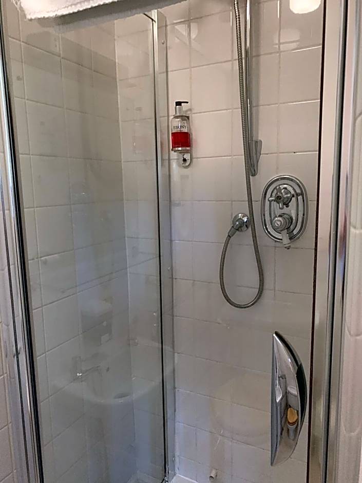 Located on the ground floor, this room has 2 single beds, double aspect windows and a shower with grab rails.