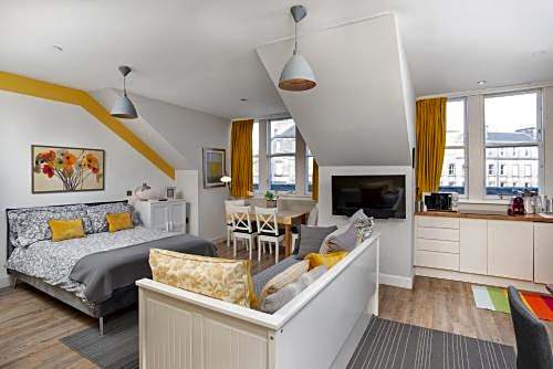 Welcome to Haymarket Apartments, where comfort meets convenience in the vibrant heart of Edinburgh! Just 0,8mi from the bustling city center, these 4-star apartments are the perfect base for your Scottish adventure. You can kick back and relax in your spacious suite, complete with extra-long beds for those who appreciate a little extra stretch. Prices start from an unbeatable £100 per night, making it an inviting option for both short and long stays.