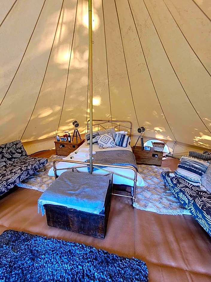Offering a tea and coffee maker, a barbecue and heating, this tent includes a shared bathroom. The unit features a private entrance, garden views, an outdoor dining area and wine/champagne is featured for guests. The unit offers 3 beds.