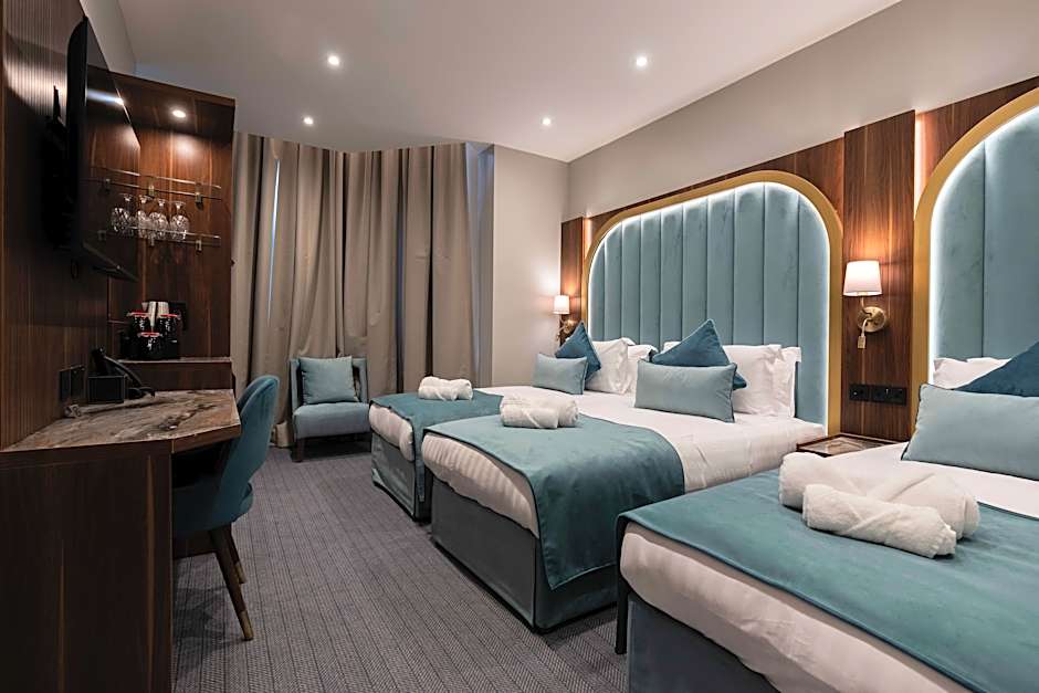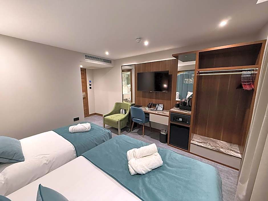 The room has a double bed and two single beds, private bathroom, 2 large flat screen tv, safe, mini fridge, coffee, free toiletries, hair dryer, coffee/tea making facilities