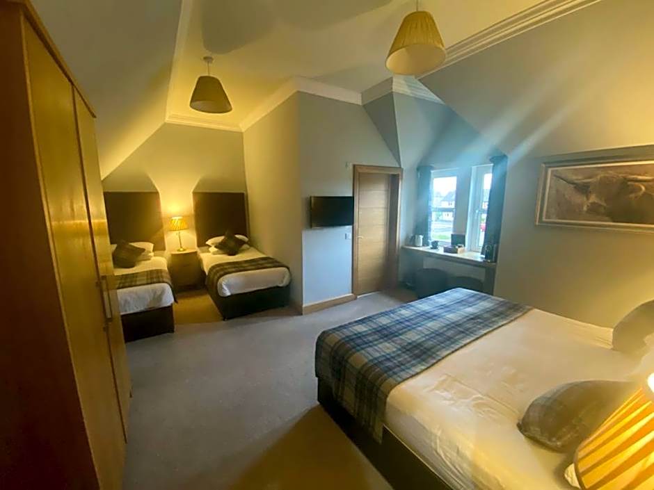Great free parking entrance to Hotel nice and spacious bar area large and clean staff nice and friendly menu had good choices mainly scottish fare. Room although compact was adequate large bathroom loads of hot water great shower